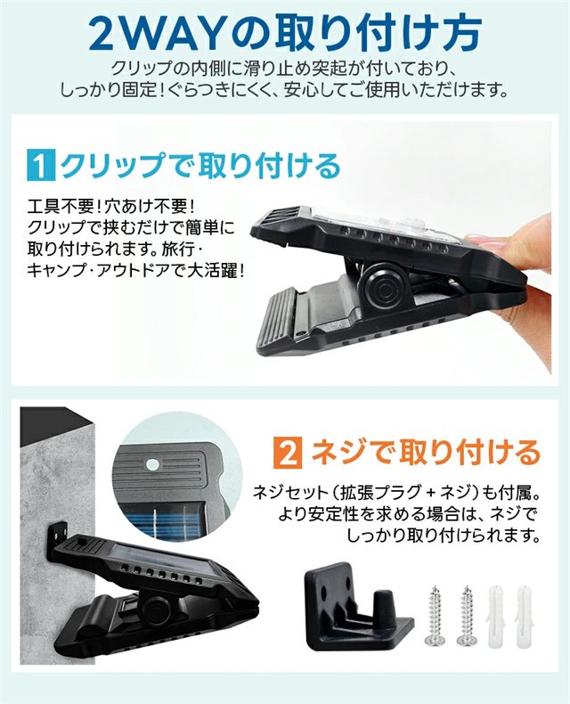 送料無料 冬新作 ソーラーライト クリップ式 屋外 led 挟むだけ クリップ式ライト 防水 太陽光充電 人感センサーライト 庭 2個セット 夜間 自動点灯 自動消灯 センサー付き 夜道 間接照明 照らす 光り 3000K 5000K 省エネ COB 電気代不要