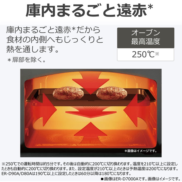 ※1 定格高周波出力1000Wは短時間高出力機能(最大3分)であり、定格連続高周波出力は600Wです。600Wへは自動的に切り換わります。温度調節範囲 発酵(30、35、40、45℃)、100〜250℃※2