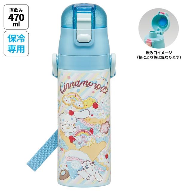 スケーター 水筒 子供 470ml 直飲み ダイレクト キッズ ステンレスボトル skater SDC4 シナモロール シナモン サンリオ 女の子 女子【幼稚園 キャラクター ワンタッチ こども 保冷 ショルダーベルト付き 子ども】