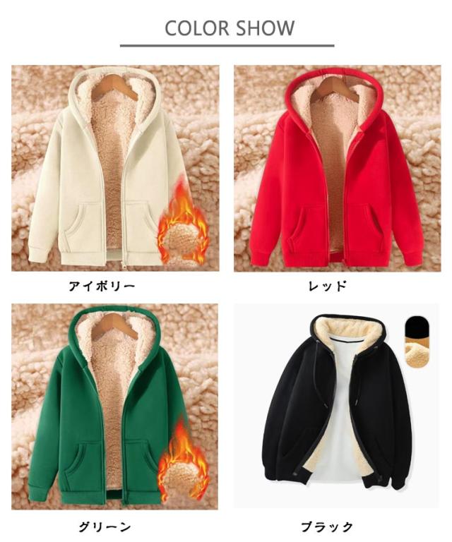 ボアパーカー レディース 防寒 ジップアップパーカー パーカー 厚手 もこもこ 保温 裏起毛パーカー ふわふわ 秋 フード付き 裏ボア 暖かい 冬 スウェット 羽織り 裏起毛パーカー あったか アウター 裏起毛 スウェットパーカー 無地 シンプル 学生 通学 大きいサイズ