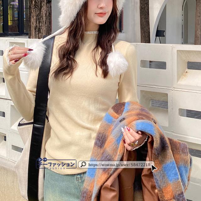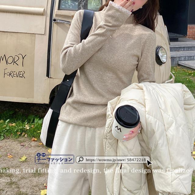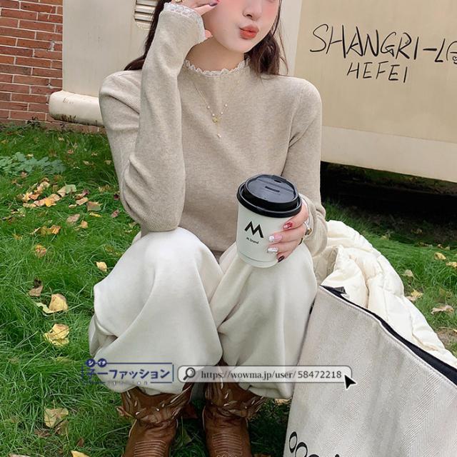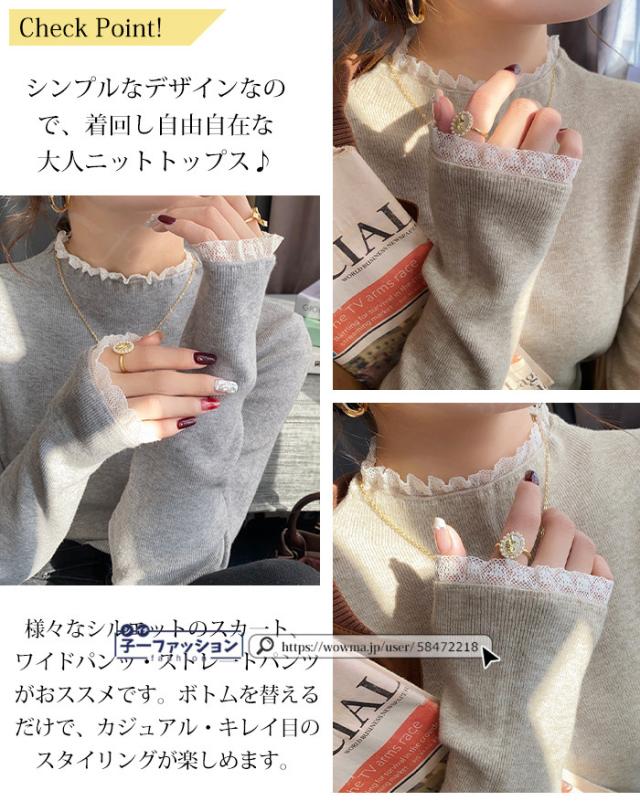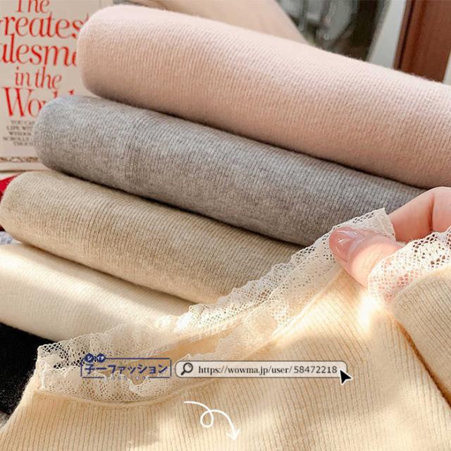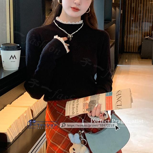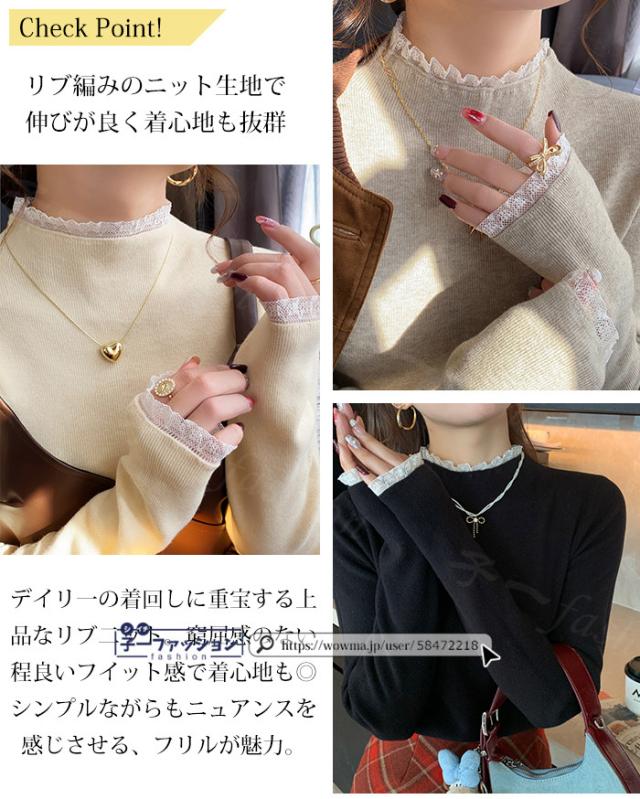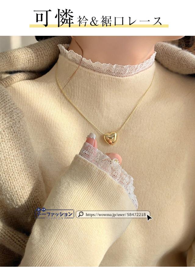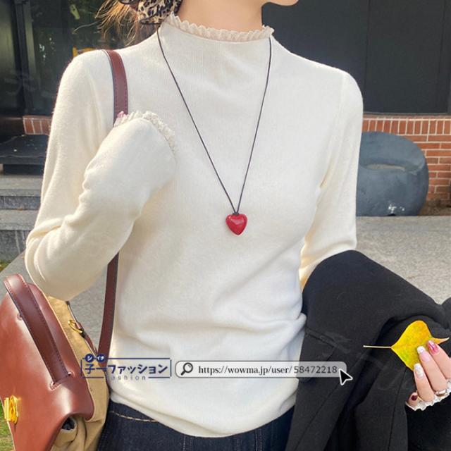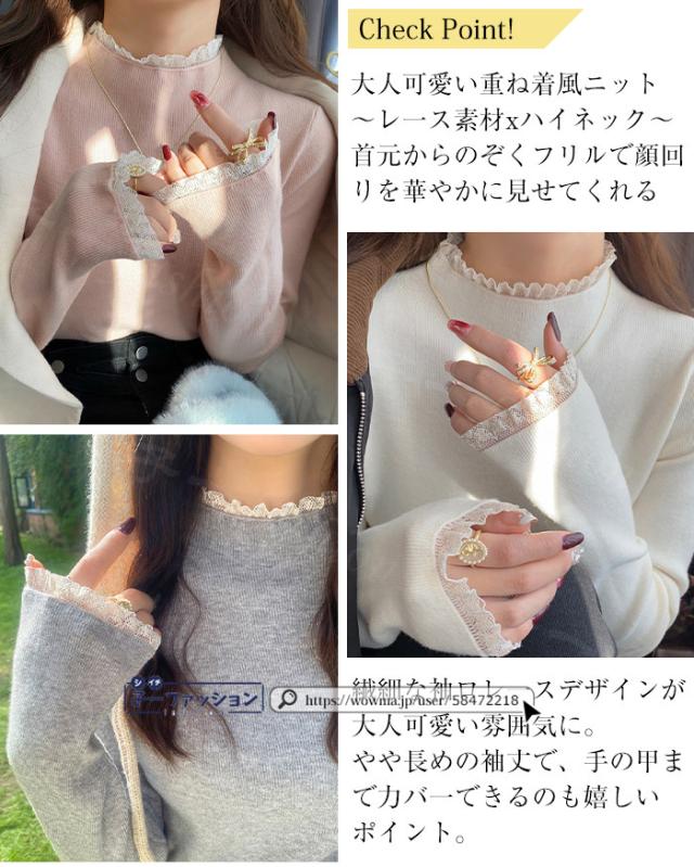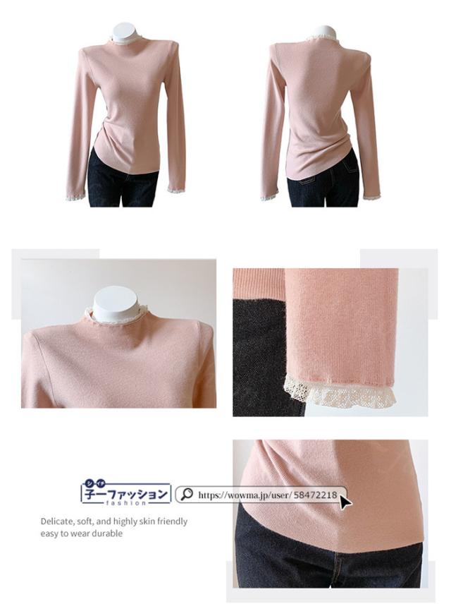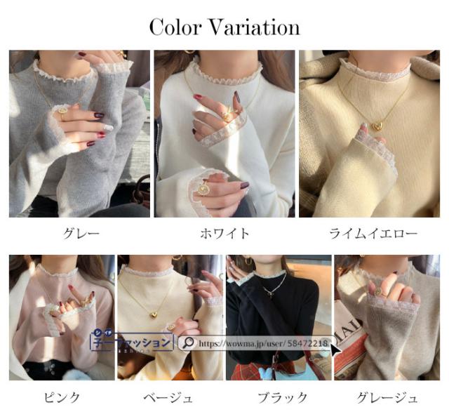 ニットセーター レース付き ハイネック インナー 無地 レースフリル襟 レディース 長袖 ニットソー スリムフィット ニットウェア 伸縮性 プルオーバー トップス 柔らかい 暖かい 大人可愛い 着回しやすい 秋冬 快適 通勤 通学 出掛け 普段着 リブニット