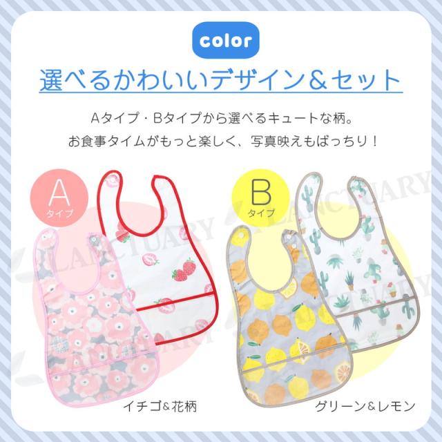 2枚セット 完全防水 食事用ビブ ベビーエプロン よだれかけ ダブルスナップ ひもなし 軽量 柔らかい 撥水 ポケット付き 洗える スタイ 離乳食 幼児 園用 食べこぼし防止 ピンク大花 ピンク小樹 出産祝い ベビーギフト内祝い かわいい 実用アイテム