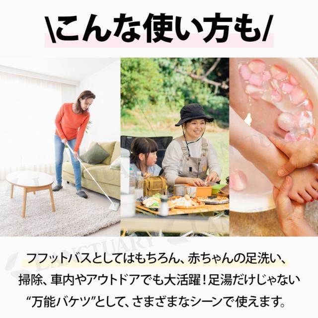 足湯としての使い方だけでなく、アウトドアや掃除など様々なシーンで大活躍!