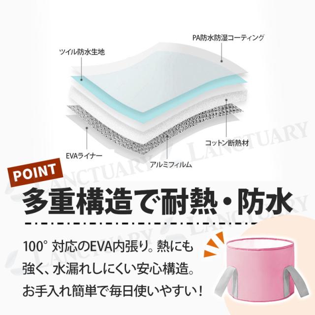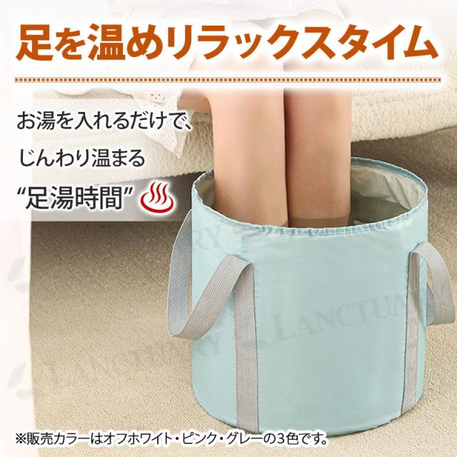 足湯バケツ 冷え対策 ぽかぽか リラックスタイム 多重構造 100° EVA内張 耐熱 防水 深型バケツ 足裏 足首 ふくらはぎ お湯 取っ手付き 吊り下げ乾燥 収納袋付き 折りたたみ可 軽量 コンパクト 保温 フットバス アウトドア 掃除 足洗い 介護 丈夫