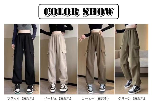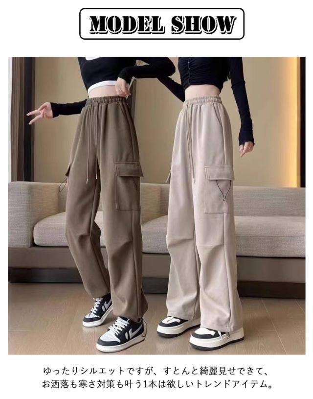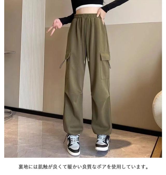 | 裏起毛 カーゴパンツ 秋服 冬服 M-2XL カーゴパンツの要素を取り入れ、パンツにタフさとカッコよさをプラスしました。 裏地には肌触が良くて暖かい良質なボアを使用しています。 ウエストはゴム仕様で穿きやすく、裾にはドローコード付きでシルエットの変化を楽しめます。 ワイドパンツは脚をまっすぐに長く見せることで、瞬時に全体の体形比率を高める設計になっています。 ゆったりシルエットですが、すとんと綺麗見せできて、お洒落も寒さ対策も叶う1本は欲しいトレンドアイテム。 | |