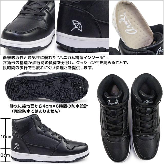 スニーカー レディース ミッドカット 防水 防滑 レインスニーカー 軽量 通勤 通学 ブラック レースアップ 防臭インソール プレゼント ギフト カジュアル