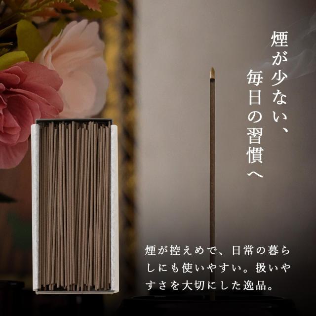 煙が少ないタイプなので、室内でも使いやすく、においや煙の量が気になる方にも安心。日常的にお使いいただいても生活に溶け込みます。