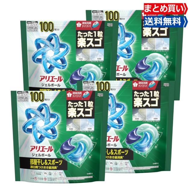 ◆まとめ買い アリエール 洗濯洗剤 大容量 ジェルボール プロ 部屋干し&スポーツ 部屋干しでもさわやかな香り 詰め替え 100個 ×4袋