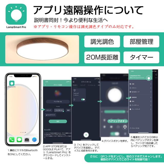 調光調色:リモコン付き・スマホ制御可能