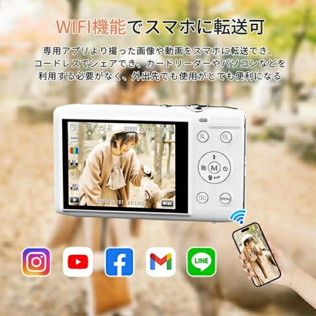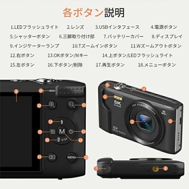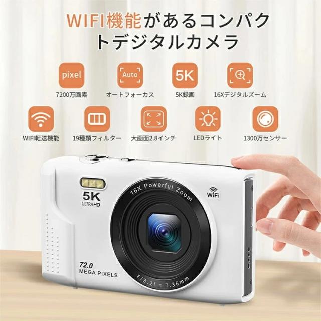 デジカメ WIFI対応 デジタルカメラ カメラ コンデジ 5K 日本製チップ 7200万画素 初心者向け デュアルレンズ スマホに送れる SDカード付き 16倍ズーム ウェブカメラ 子供用 修学旅行スマホ転送