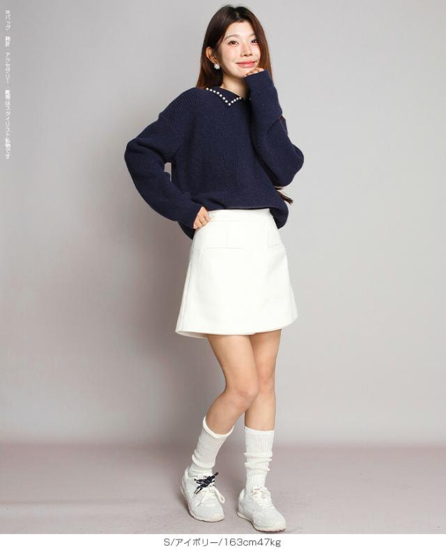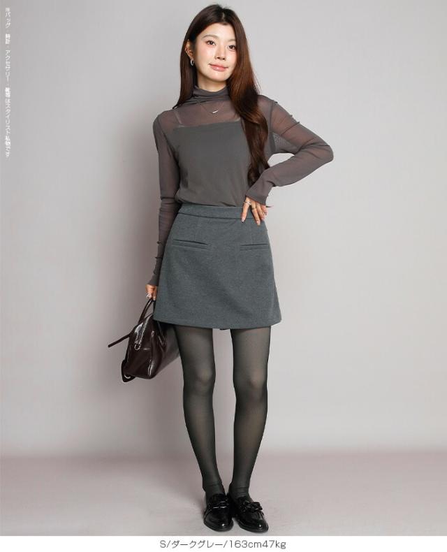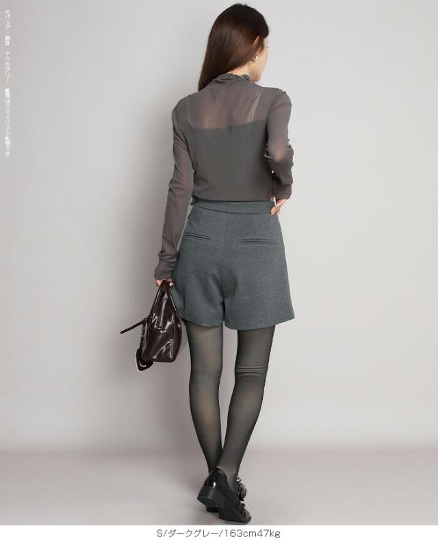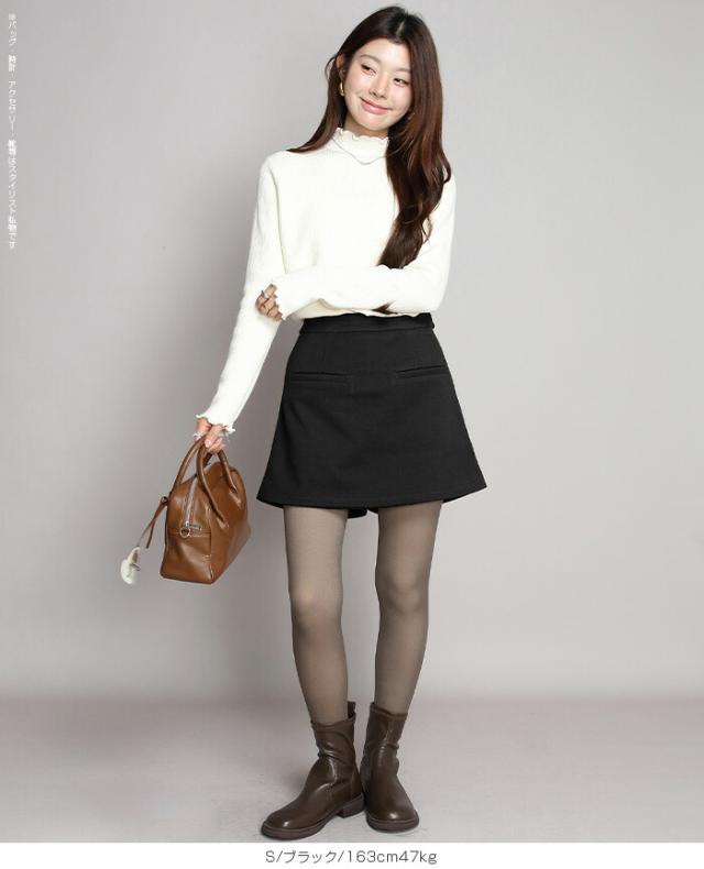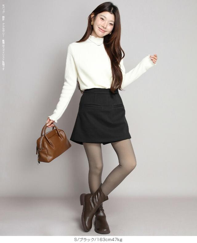 スカートの上品さとショートパンツの安心感を両立した“スカートパンツ”。 柔らかな微起毛メルトン調生地で暖かく、 すっきり台形シルエットが脚をきれいに見せます。 左サイドはファスナー&スナップボタン開閉、 フロント&バックはフェイクポケットでフラット見え。 タイツ合わせやローファーにも相性抜群、 通勤・通学・お出かけまで大活躍のミニ丈ボトムです。 《商品ポイント》 スカート見えのショートパンツ一体型で「めくれても安心」 ふんわり微起毛メルトン調素材:やわらか・ほどよいハリ・あたたかい 左サイドファスナー+スナップボタンで着脱ラク&ウエストすっきり フロント&バックのフェイクポケットでミニマル&きちんと見え 台形×ミニ丈で脚長効果、タイツ合わせももたつかない きれいめにもカジュアルにも使える万能デザイン 《デザイン・シルエット》 台形ミニ:ヒップラインを拾いにくく、まっすぐ美脚見え すっきりウエスト:トップスインもアウトも決まるフラット設計 ショートパンツ内蔵:座る・階段・風の日でも安心のスカートパンツ 微起毛メルトン:表面ほんのり起毛で高見え、冬の防寒にも◎ 《コーディネート提案》 通勤きれいめ:タートルニット+タイツ+ローファーで上品モノトーン 休日カジュアル:スウェットやショート丈ニット+スニーカーで抜け感 キレイめアウター:ノーカラーコートやジャケットとも好相性 季節小物:ロングブーツや厚手タイツを足せば真冬まで活躍 《サイズ・カラーバリエーション》 サイズ:S/M/L カラー:ブラック/ブラウン/ダークグレー/アイボリー 《素材・機能性》 ・素材:ポリエステル83%、レーヨン15%、ポリウレタン2% ・透け感:なし ・伸縮性:なし ・厚み:普通 |