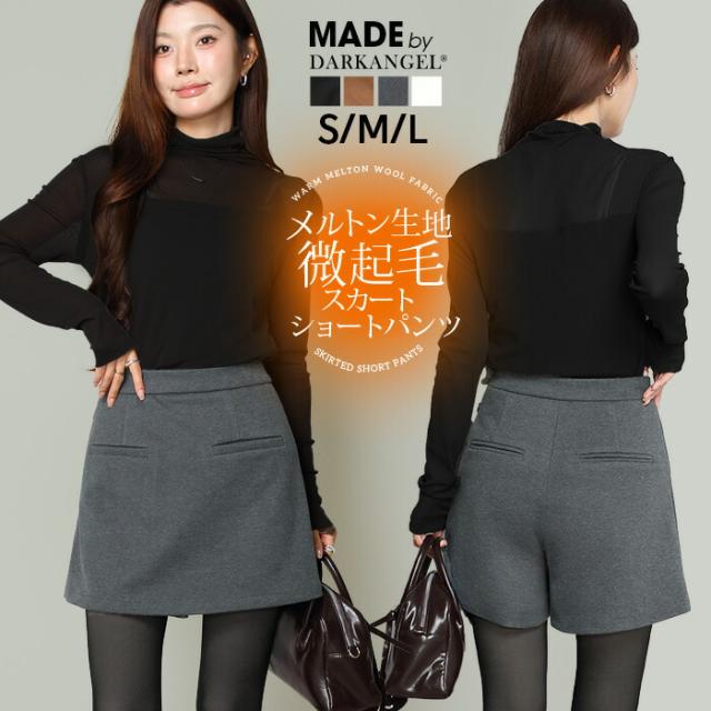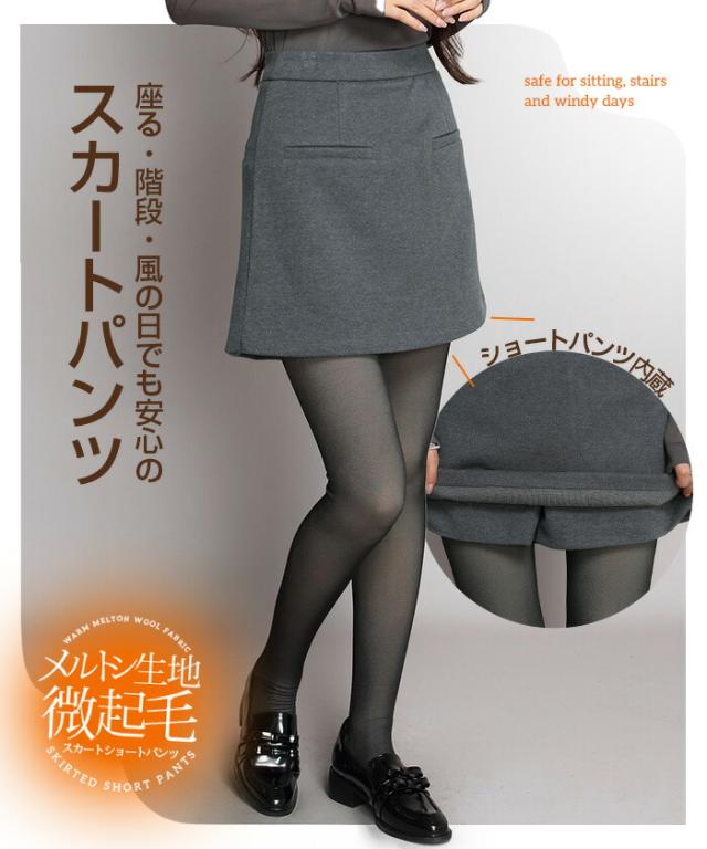 1,500円OFFクーポン!ショートパンツ 冬 裏起毛 レディース ボトムス ミニスカート スカートパンツ 微起毛メルトン きれいめ ショートパンツ一体型 防寒 冬 通勤 通学 体型カバー スカート見え 【メルトンスカートショートパンツ】ダークエンジェル ●即納●