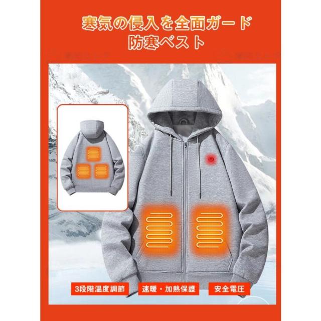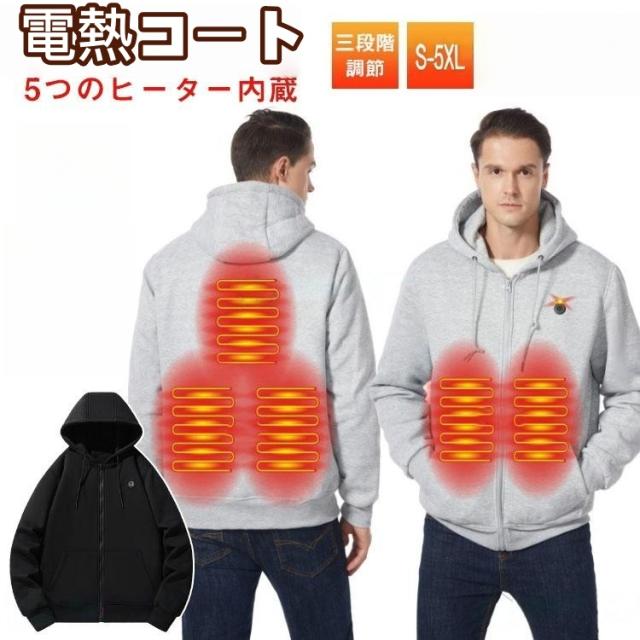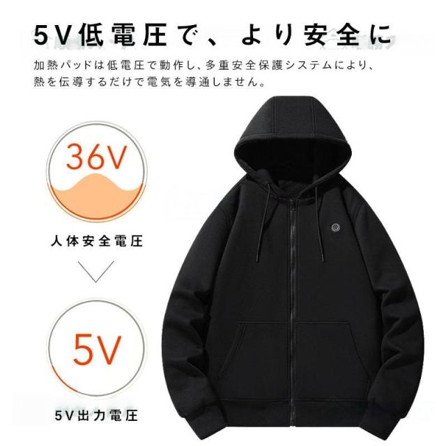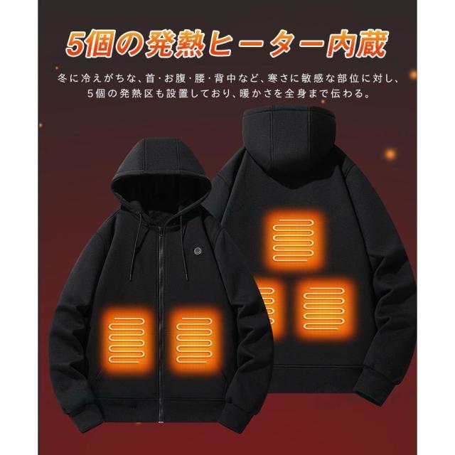 電熱ウェア usb給電 電熱パーカー メンズ 防寒 速暖 洗える 3段階調温 5箇所発熱 防寒グッズ 電熱ウェア バッテリー パーカー 柔らか アウトドア