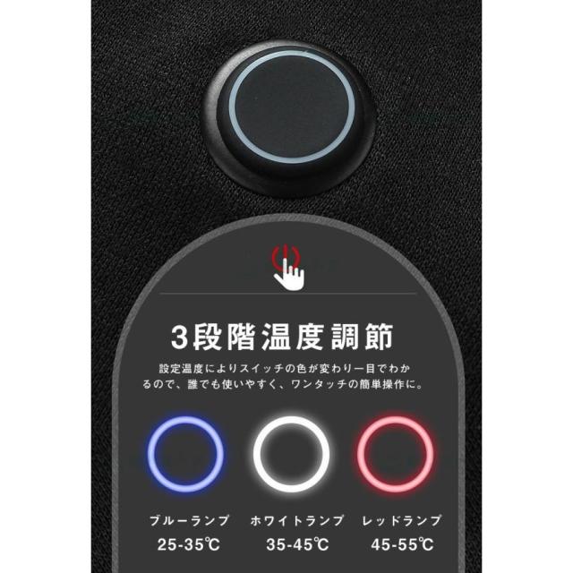 3段階調整温度:(青)低温モード25-35°C、(白)中温モード35-45°C、(赤)高温モード45-55°C