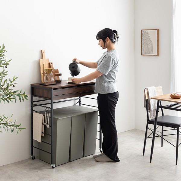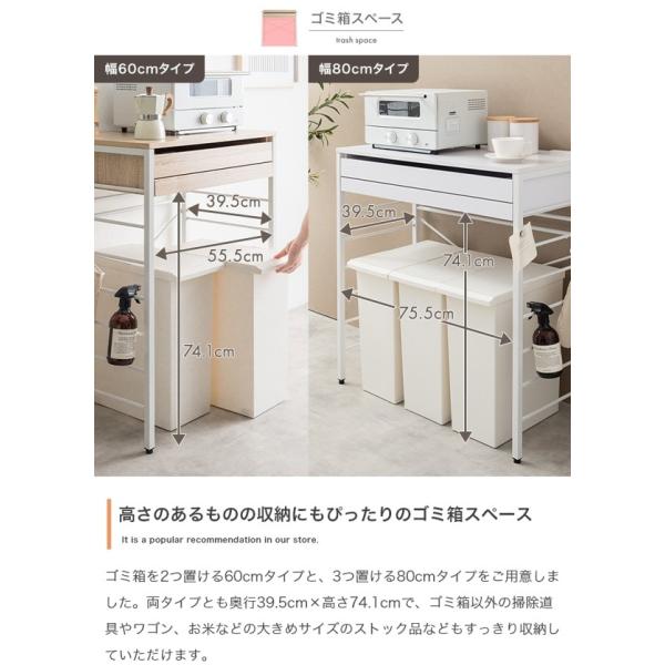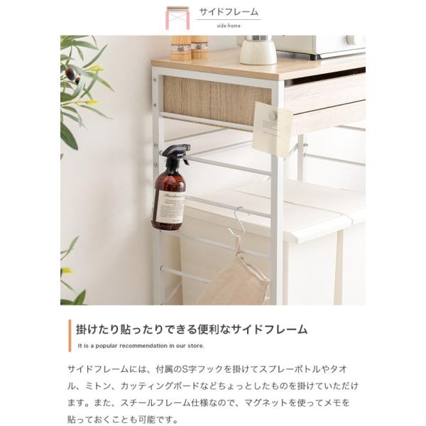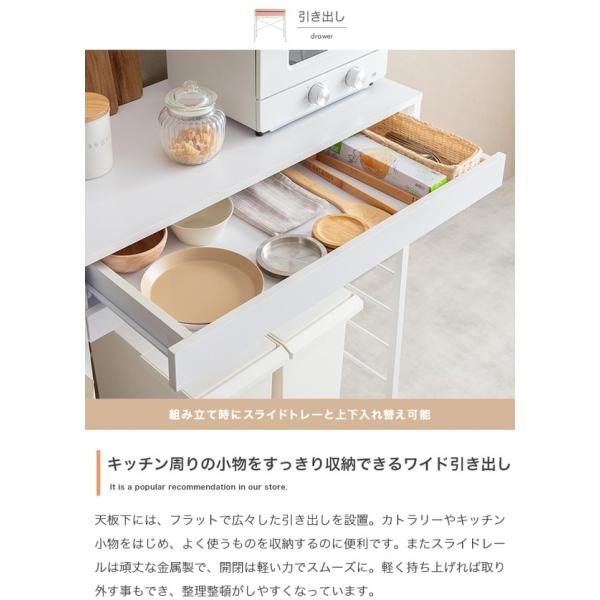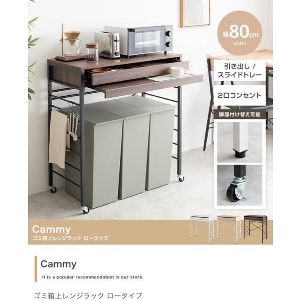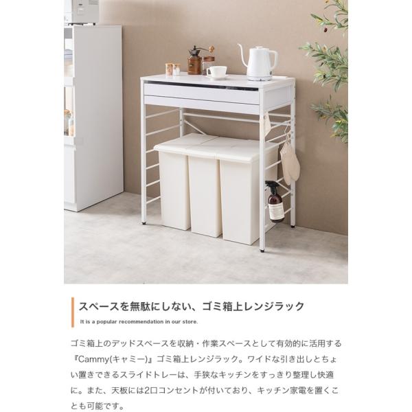 ゴミ箱上 レンジラック おしゃれ 北欧 幅80cm キャスター付き 省スペース レンジ台 炊飯器置き スライドトレー 引き出し キッチン収納 Cammy ID003