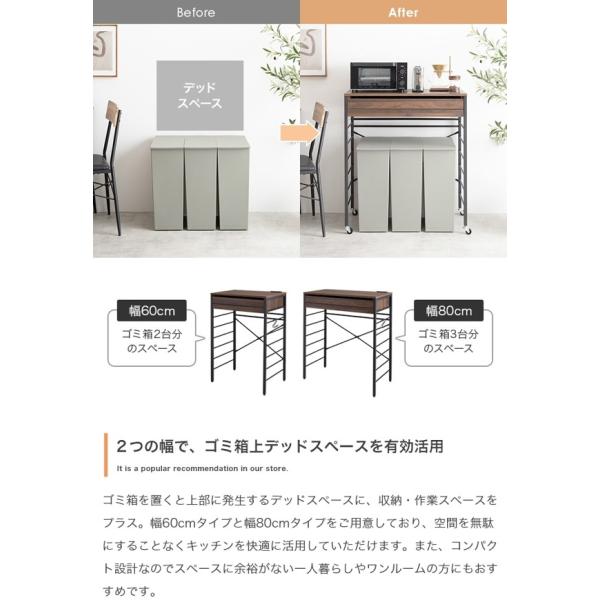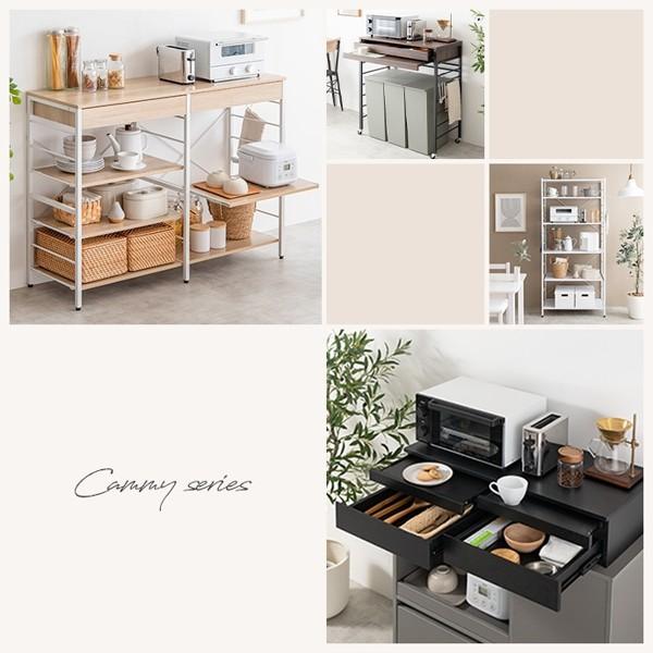 ゴミ箱上のデッドスペースを収納・作業スペースとして有効的に活用する『Cammy(キャミー)』ゴミ箱上レンジラック。