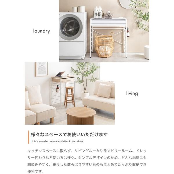 また、天板には2口コンセントが付いており、キッチン家電を置くことも可能です。