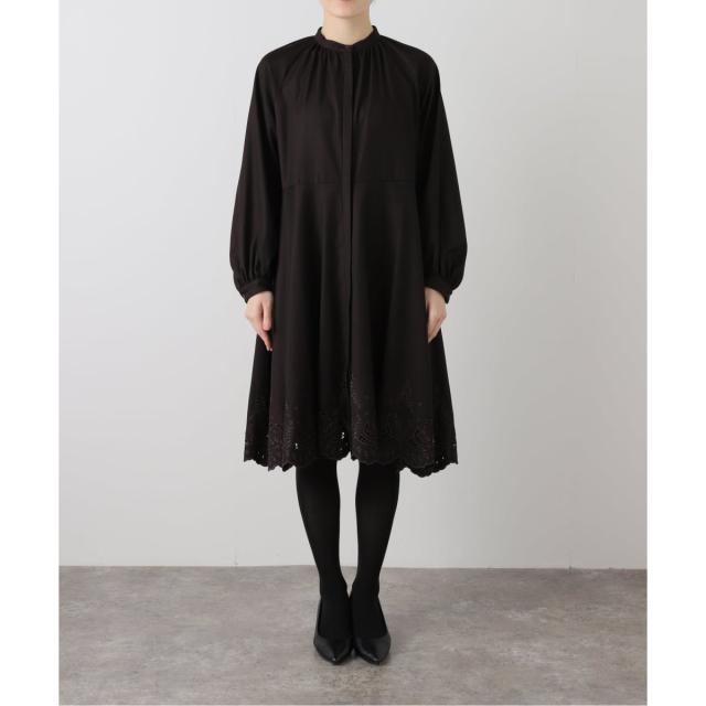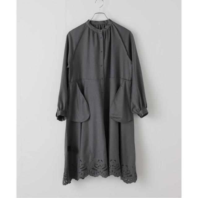梳毛調のTR素材を使用した、甘さ控えめの刺繍ワンピース。