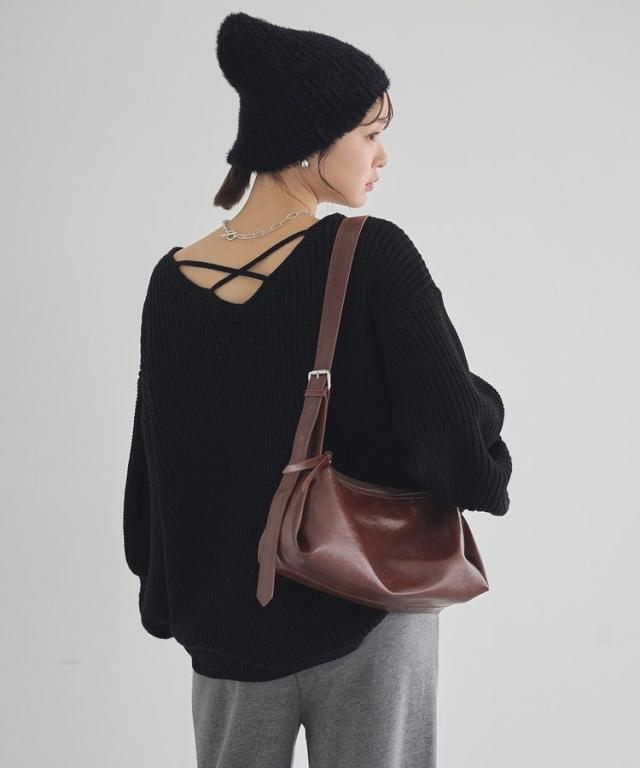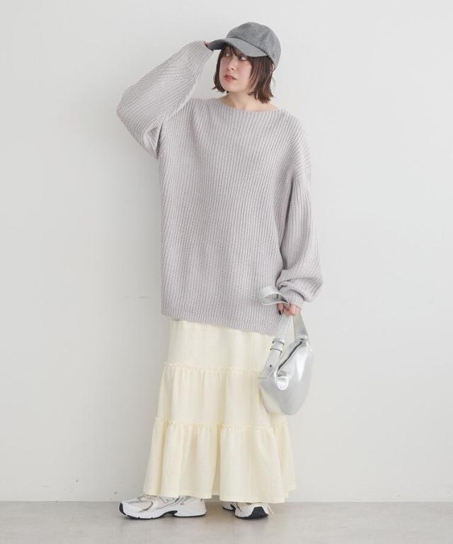 ローゲージニットの編み模様がナチュラルな雰囲気を演出するルーズニットプルオーバー。丈感長めの女性らしいシルエットが縦に落ち感を作り、すっきりと合わせていただけます。クロスネックラインを前面にしても合わせられる、前後2WAY仕様なのも嬉しいポイント。毛玉になりにくく、洗濯機で洗えるイージーケア素材なのも魅力です。