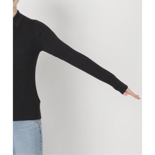 ほどよく身体に沿う細リブと、クラシックなポロ襟が上品な印象を演出。