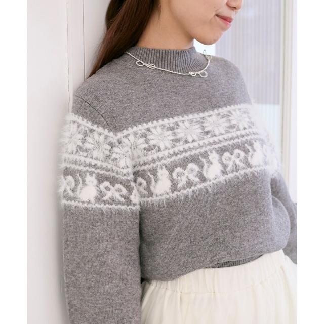 ネコと雪のモチーフが心をくすぐる、ふんわり可愛い主役級ニット