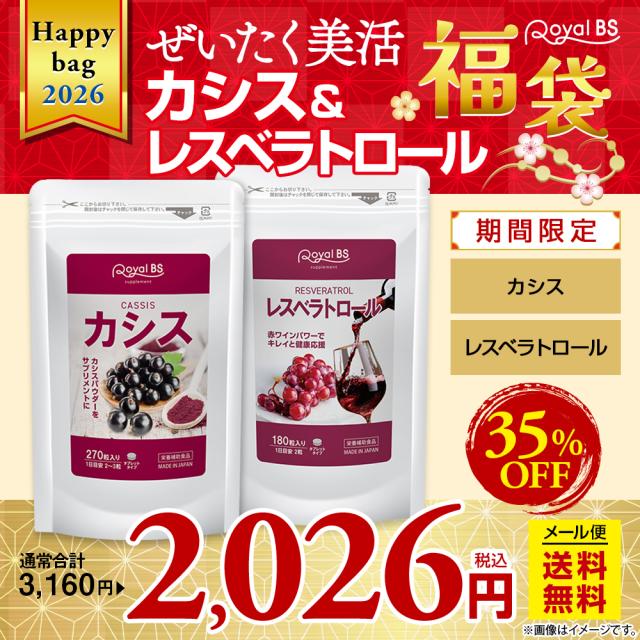 【ぜいたく美活 カシス&レスベラトロール 福袋】サプリメント 福袋 2026 健康 美容 RoyalBS 日本製 カシス カシスパウダー をサプリに レスベラトロール 赤ワインエキス ポリフェノール