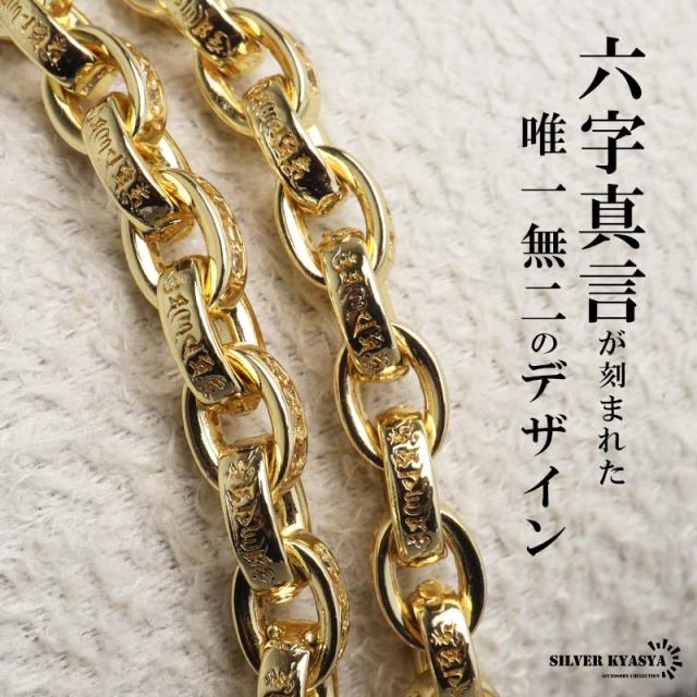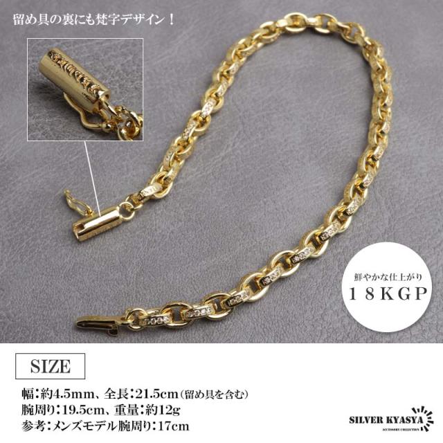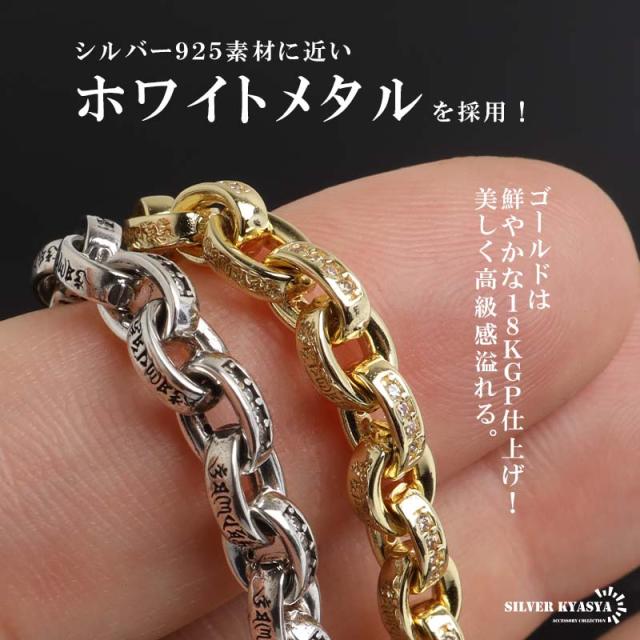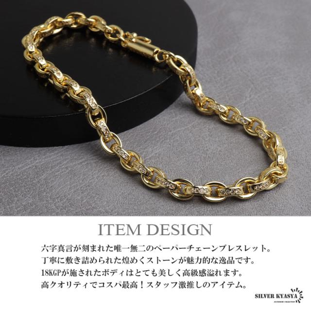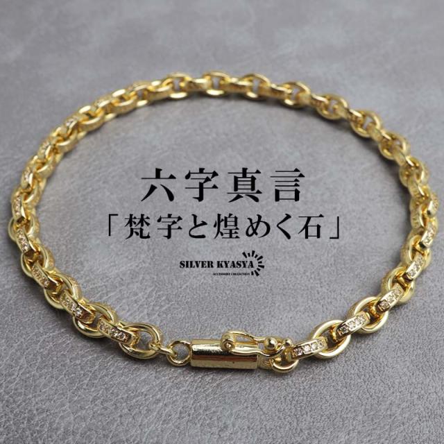 ペーパーチェーンブレスレット 六字真言 小粒 ストーンブレスレット ゴールド 18KGP ホワイトメタル 梵字 細身 二重ロック キラキラ 煌めく 高級感 重厚感 かっこいい メンズ 男性