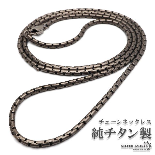 純チタン製 チェーンネックレス 細身 軽い 丈夫 メンズネックレス メタルネックレス 濃い目 シルバー 幅2mm 60cm グレー シンプル 滑らか 肌触り メンズ 男性 金アレ対応