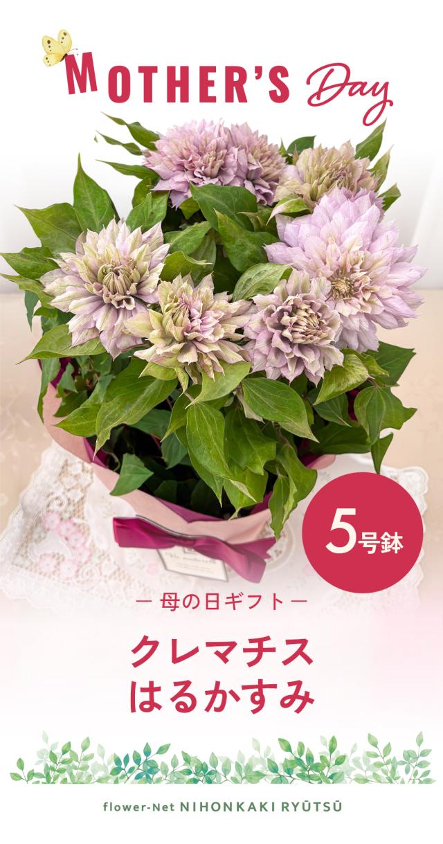 \ 早割 / 母の日 プレゼント クレマチス はるかすみ 5号鉢 送料無料 母の日ギフト 花 鉢植え 日本花キ流通