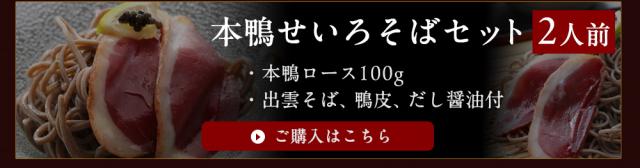 | 原材料 | 【なまそば】そば粉(そば(島根県産))、食塩 【鴨肉】鴨肉(タイ産)、食塩 【調味塩】食塩(国内製造)、野生植物抽出ミネラル(昆布、ワカメ、竹、松葉、ビワ葉、イタドリ、熊笹、クズ葉、ヨモギ、ドクダミ、スギナ、その他) |
