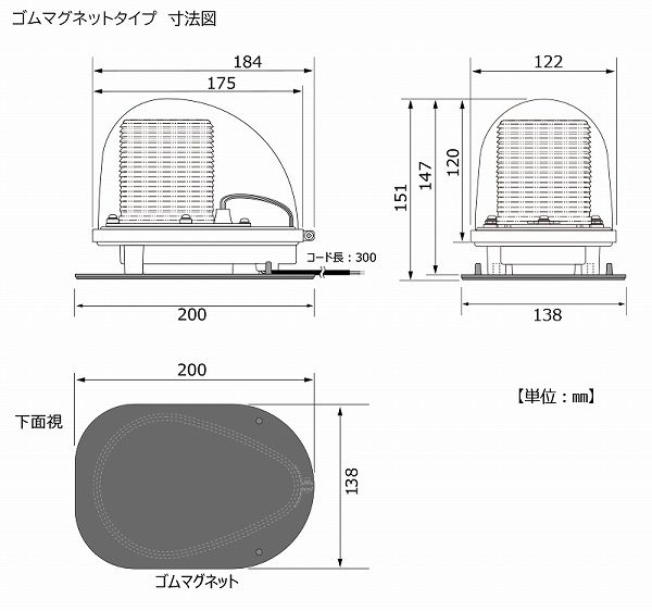 小糸製作所/KOITO LED青色丸型警光灯 12V/24V 2N型 ゴムマグネットタイプ DL2NB
