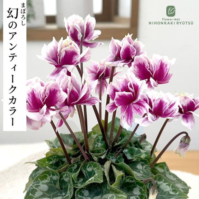 稀にしか出ない希少カラーのシクラメン。 深みのある青紫をベースに、くすみ感を帯びたアンティーク調の色合いが魅力で、上品で落ち着いた雰囲気を演出してくれます。 |