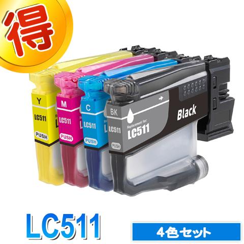 ブラザー プリンターインク LC511 4色セット brother 互換インク カートリッジ LC511-4PK 対応プリンター DCP-J929N-W/B MFC-J943DN/DWN DCP-J916N DCP-J529N MFC-J908N MFC-J742DN/DWN 純正インクよりお得 LC511BK LC511C LC511M LC511Y