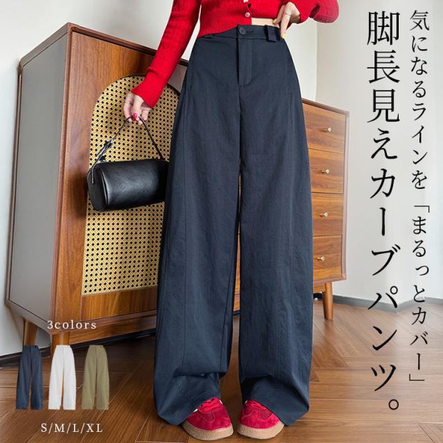 気になるラインを「まるっとカバー」脚長見えカーブパンツ。