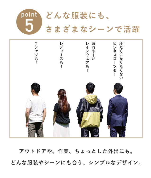 【雨が入らない防水仕様で、レインウエアの蒸れも吹き飛ばす】