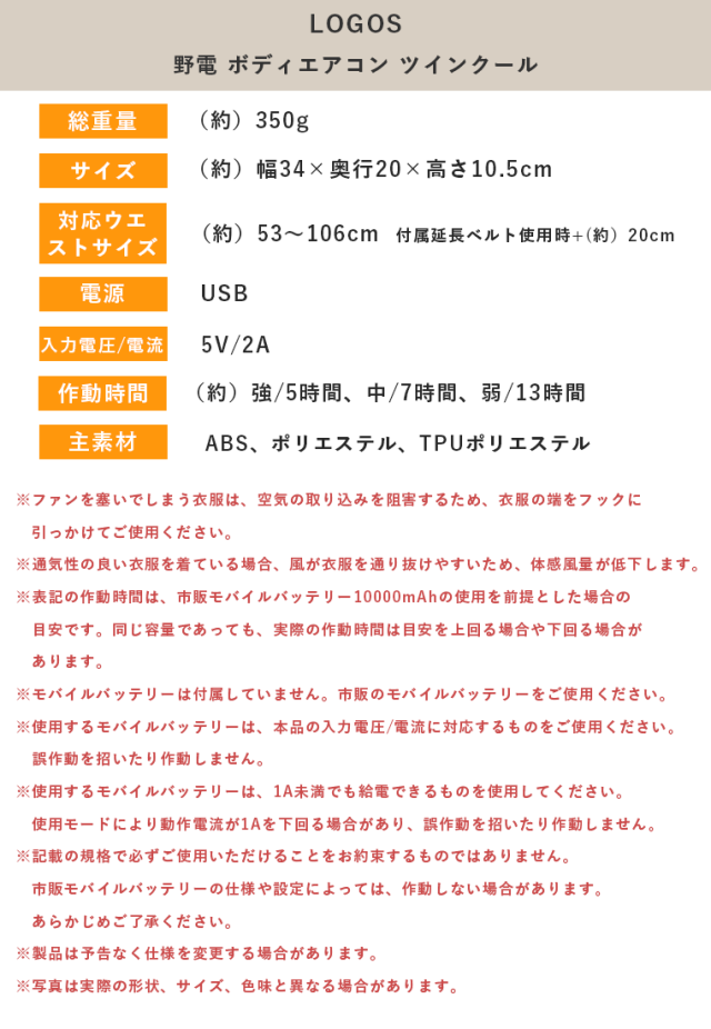 【正規販売店】 ロゴス LOGOS 野電 ボディエアコン ツインクール 81336732 バッテリー別売り アウトドア キャンプ 送風 扇風機 夏 暑さ対策