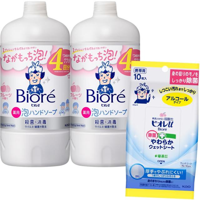 【医薬部外品】ビオレu 泡ハンドソープ フルーツの香り つめかえ用 770ml×2個 + ビオレu 除菌やわらかウェットシート 10枚入