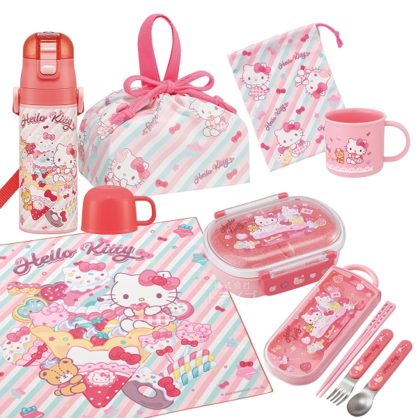 ハローキティ 26 お買得7点セット お弁当箱 中子付 360ml トリオ コップ コップ袋 2WAY水筒 巾着 ランチクロス