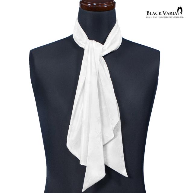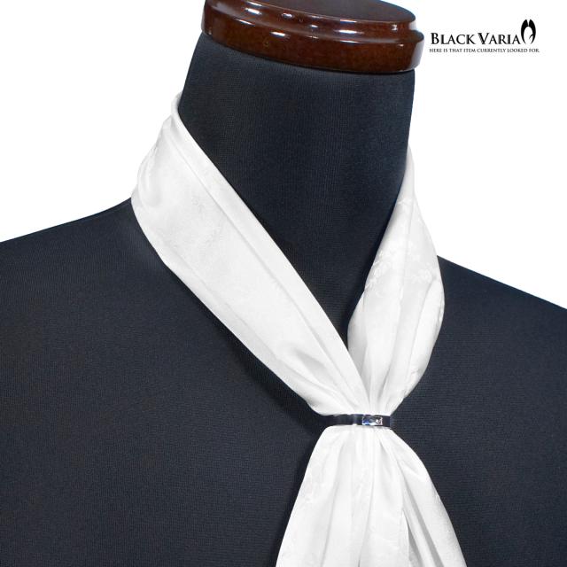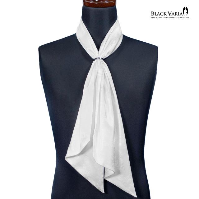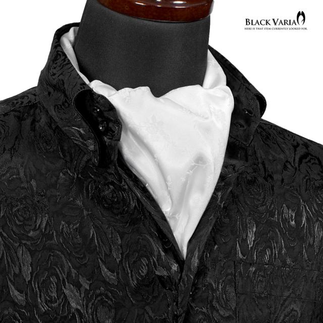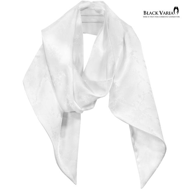 BLACK VARIA ブラックバリア ストール 薔薇柄 ローズ 無地ジャガード サテン ストールリング メンズ スカーフ 日本製(ホワイト白) st016