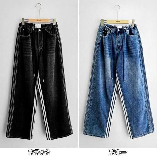 パンツ セクシー レディース デニム シルエット 可愛い スポーティ 快適 ドレープ ブラック ブルー S M L
