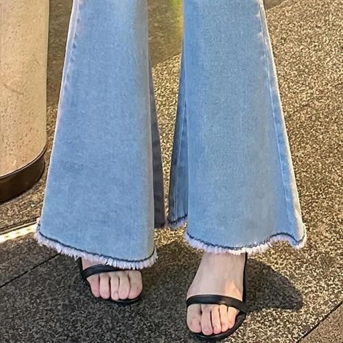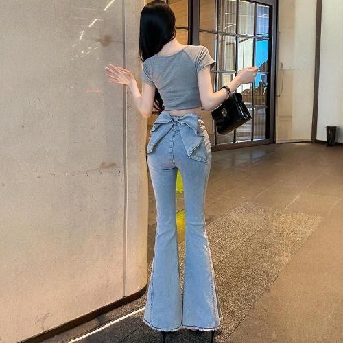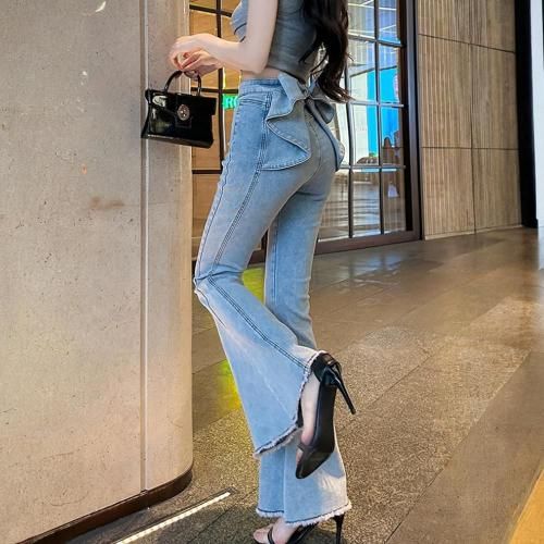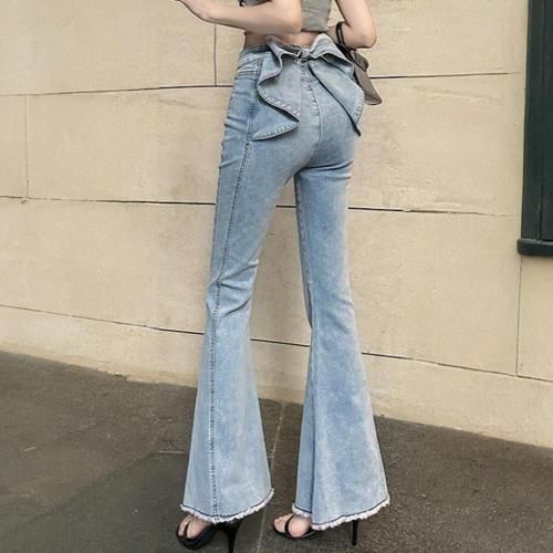 美脚×トレンド満載3Dリボン付きハイウエストマーメイドフレアデニム(PANTS)。