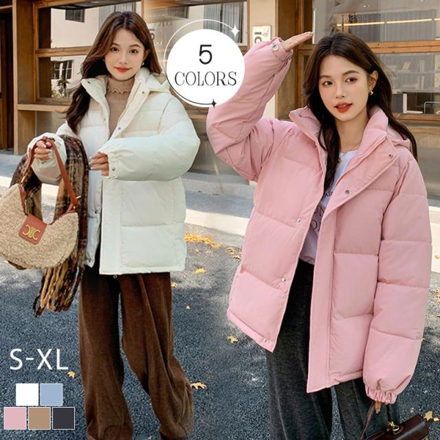即納 送料無料 コートフードジャケット ショート丈ダウンコート 冬物 アウターレディース 中綿コート ファジーホワイト パウダーブルー ソフトピンク ユニセックス 男女兼用 カップル