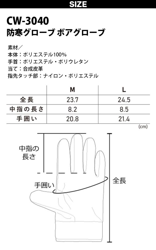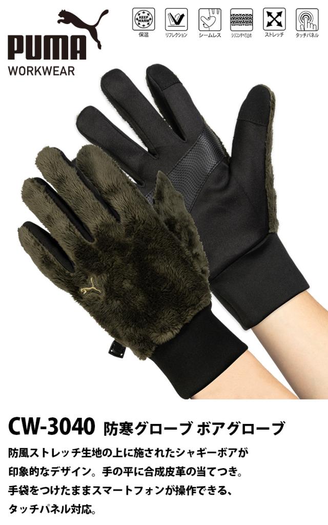 PUMA ジャギーポア CW-3040 防寒手袋 冬物 プーマワークウェア 作業服 作業着 グローブ 防寒 防風 防滴