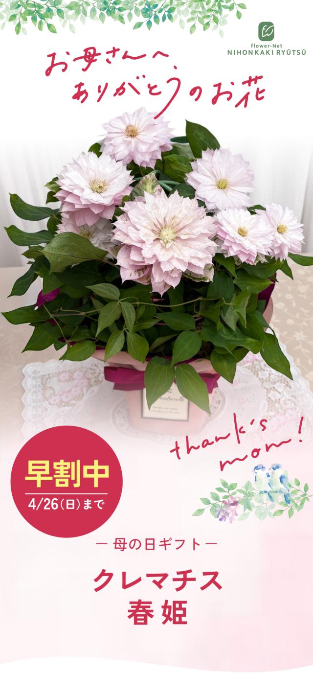\ 早割 / 母の日 プレゼント クレマチス 春姫 5号鉢 送料無料 母の日ギフト 花 鉢植え 日本花キ流通