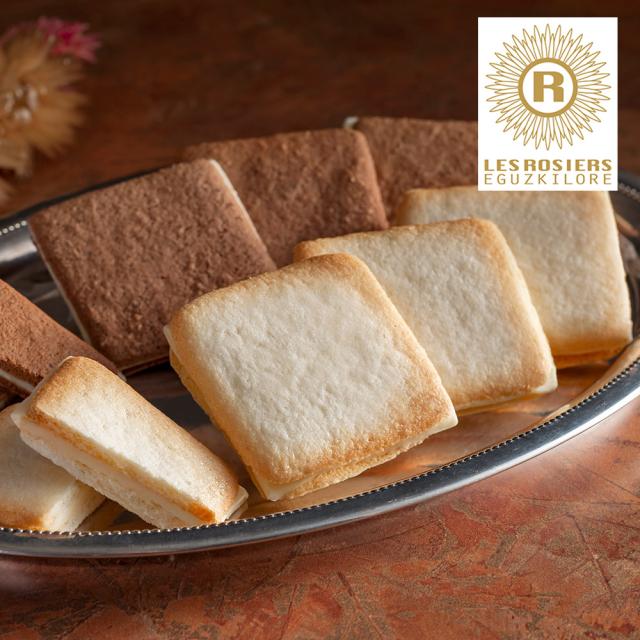 米粉を使用したさくさく食感の2種類のラングドシャに、クリーミーなホワイトチョコレートをサンドしました。