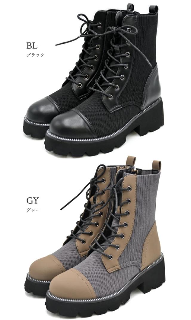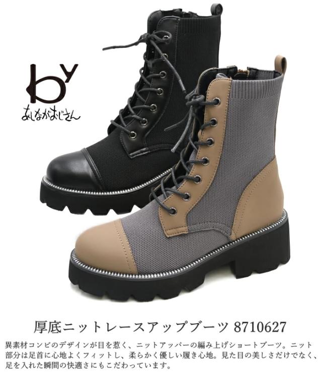 ▼厚底ニットレースアップブーツ 8710627