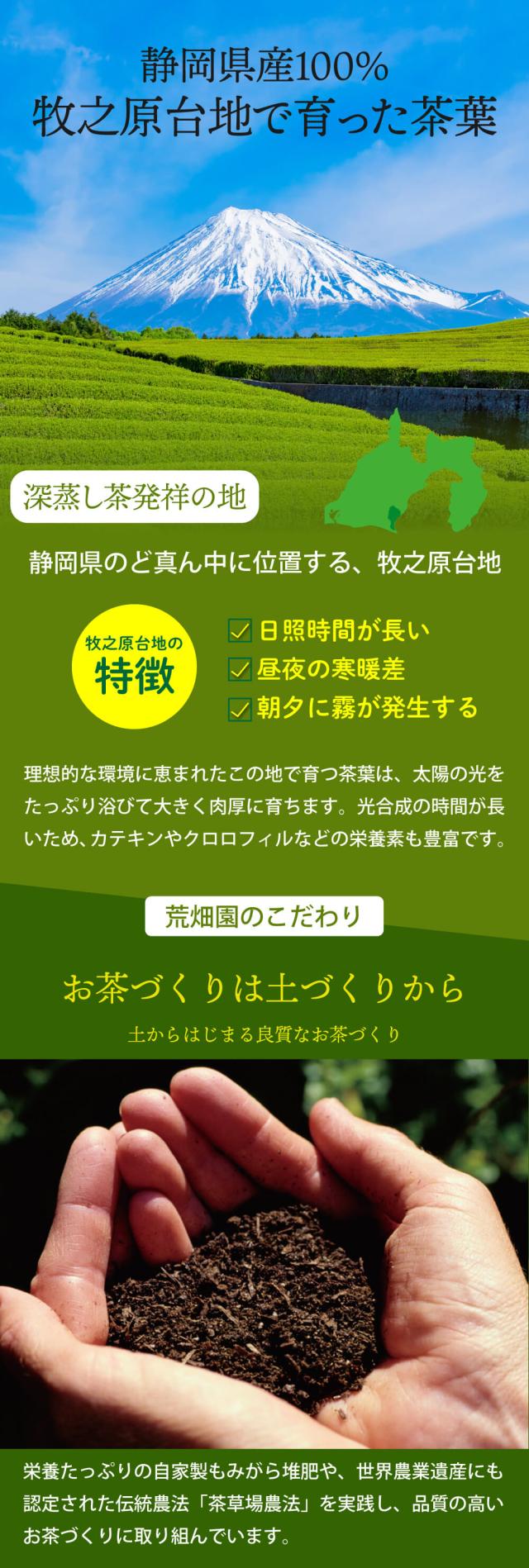 深むし専門店こだわりの「がぶがぶ飲める静岡深むし茶」やワンランク上の「特選がぶ飲み静岡深むし茶」、お茶の産地だからこそ味わえる「特選荒茶旬」 荒畑園で大人気のお茶を福袋に詰めました♪