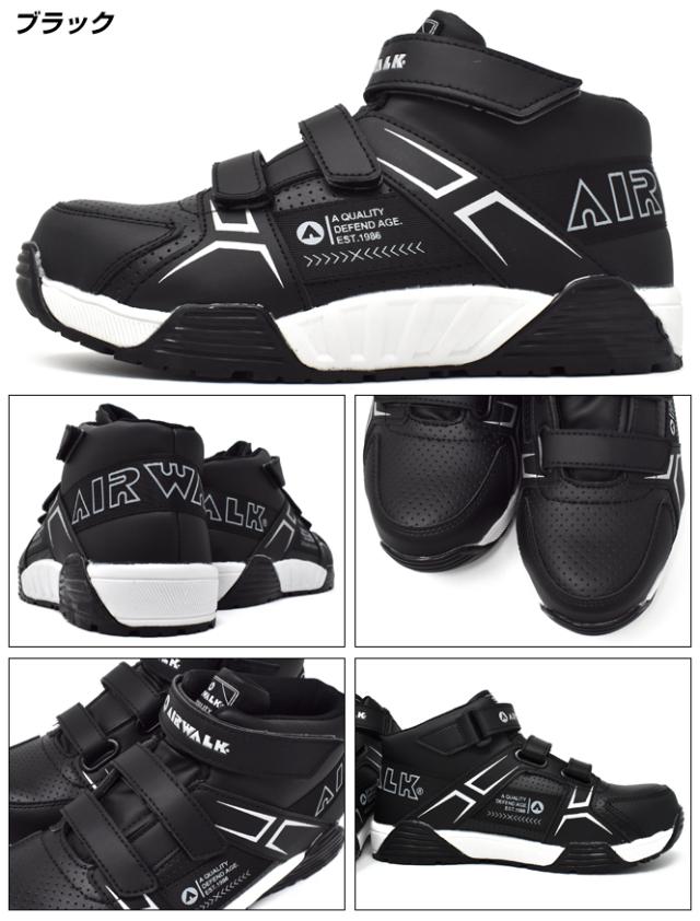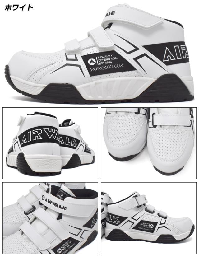 エアウォーク メンズ 安全靴 セーフティーシューズ ミッドカット スニーカー AIR WALK AW-970 AW-980 ベルクロ マジックテープ 面ファスナー 作業靴 黒 白 軽い JIS規格 安全靴 バイク ブーツ ライダーブーツ アウトドア 靴 ポイント消化