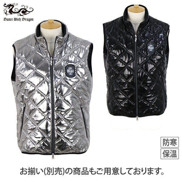 パンツ ロングパンツ メタリック タフタキルティング素材 ウエストゴム入り 保温 防寒 前身頃光沢感 ロゴワッペン ゴルフウェア