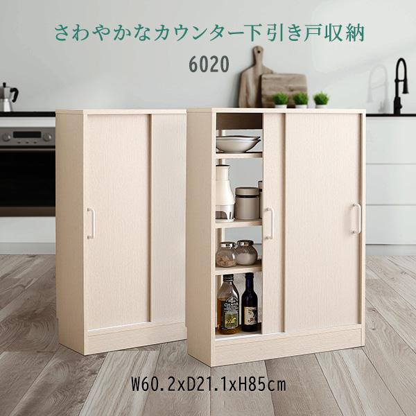 カウンター下収納 キッチン収納 キッチンラック 薄型 引き戸 奥行き21 高さ85 幅60 おしゃれ 北欧